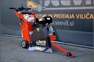 Pri razrezu tlakov uporabljamo talni rezalnik Husqvarna FS400LV z nekaterimi predelavami, ki omogočajo večjo natančnost in manjšo proizvodnjo dima. Slednje je pomembno, saj je dosedanja praksa takšna, da se razrez izvaja, ko so regali že postavljeni.