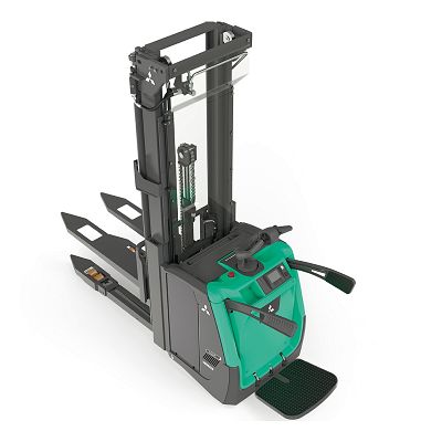 Visokodvižni viličar SBV12N3i zazna kot zavoja in pravočasno zmanjša hitrost pred ovinki. Patentirana ergonomska ročica ErgoSteer z lahko dostopnimi gumbi omogoča enostavno krmiljenje ter je odporna na udarce.